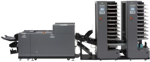 市场上占地较小的全自动配订折切装订系统,能够实现骑马订/边订/角订/只折不订等功能,配合性能优秀的吸风配页塔或高速进纸飞达以及超静音电子钉头,全自动调节设置,支持中文操作界面。