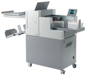 生产力:能够每分钟精确的折页 260 张纸。具有 5 档速度,具备2个折栅和4 个折页辊确保厚纸也能平行折。标准折页模式有6种:单折,双折,半风琴折,信件折,风琴折和门型折。用户还可以自定义设置自己的折页形式。
